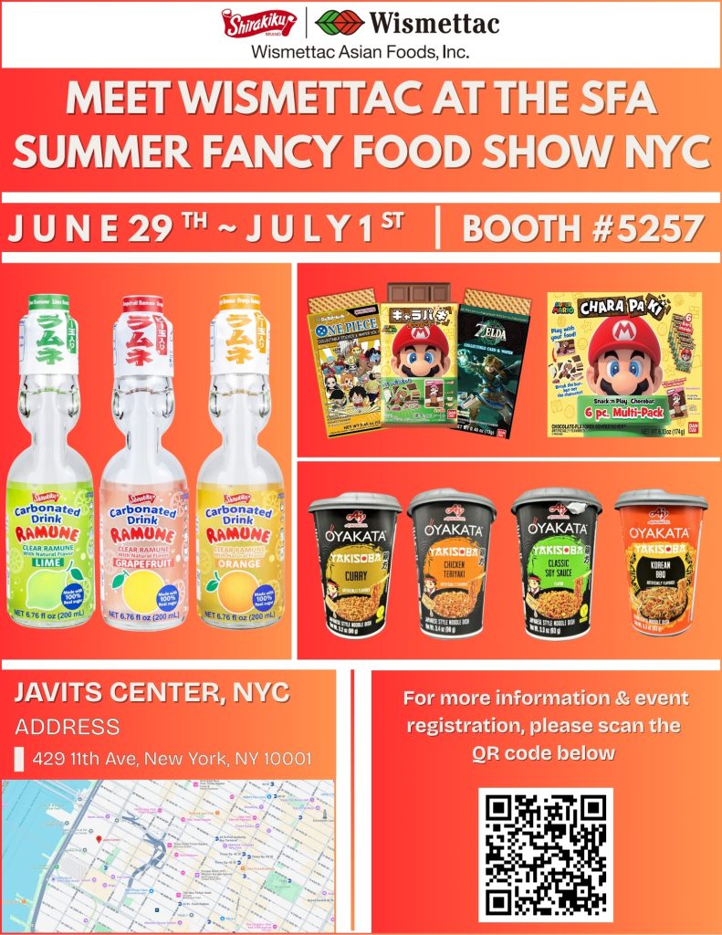 Wismettac Asian Foods will be joining this summer’s SFA Summer Fancy Food Show NYC at the Javits Center from June 29th to July 1st.
